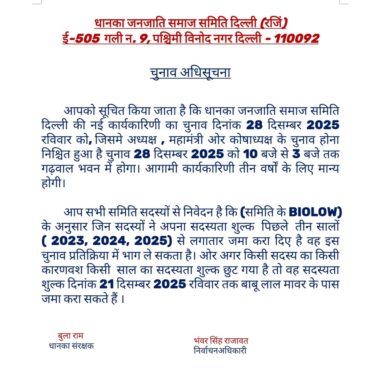 DHANKA JANJATI SAMAJ SAMITI DELHI